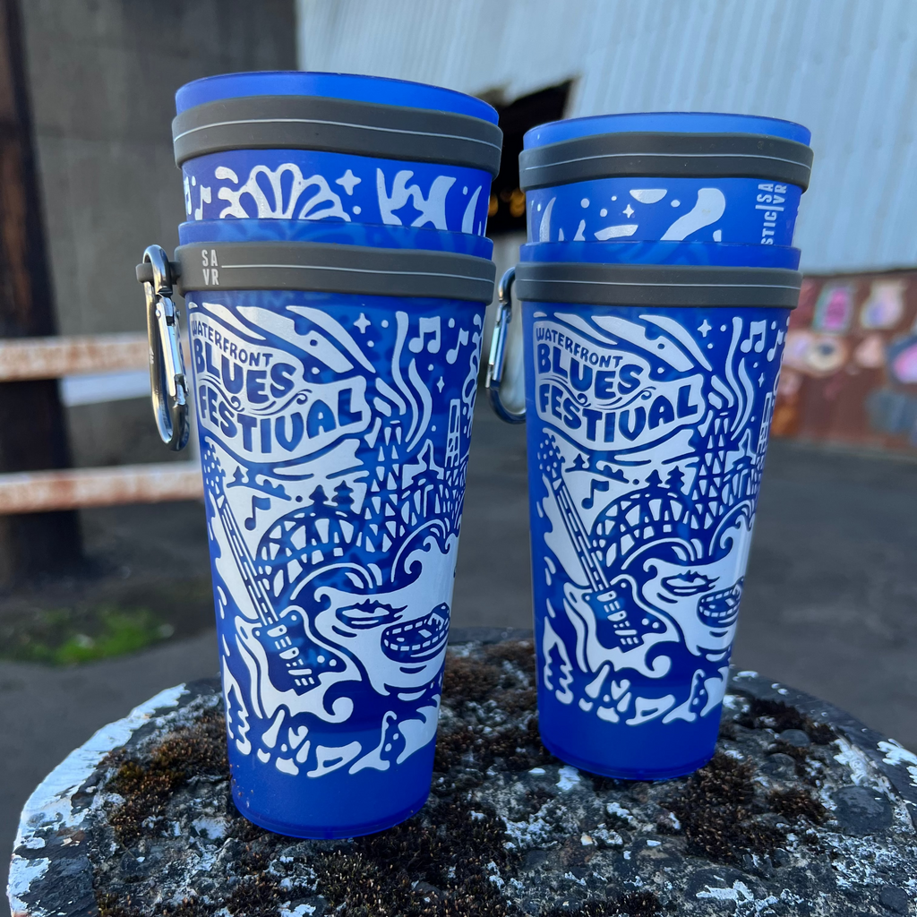 16-ounce recycled plastic pint glass with carabiner holder